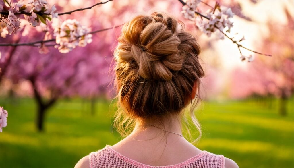 🌿 Messy bun med lösa slingor – Ger en avslappnad men chic känsla, perfekt för vårens utomhusmiddagar.